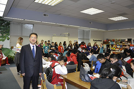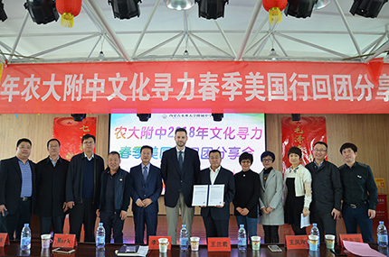 3月26日上午,学校在励志楼多功能厅举行了“2018年文化寻力春季美国行回团分享会”,会前校领导与来宾进行了校园、各展厅、教室的参观,会上出团主领队刘俊副校长、学生及家长代表分别做了总结与分享发言,美国北卡罗莱纳州斯泰茨维尔学区代表Mark先生向我校颁发《国际人才培养基地学校联合声明》,双方互为海外分校。下午,Mark先生作为学区代表与我校八年级有出国留学意向的学生进行了海外分校入学面谈交流。